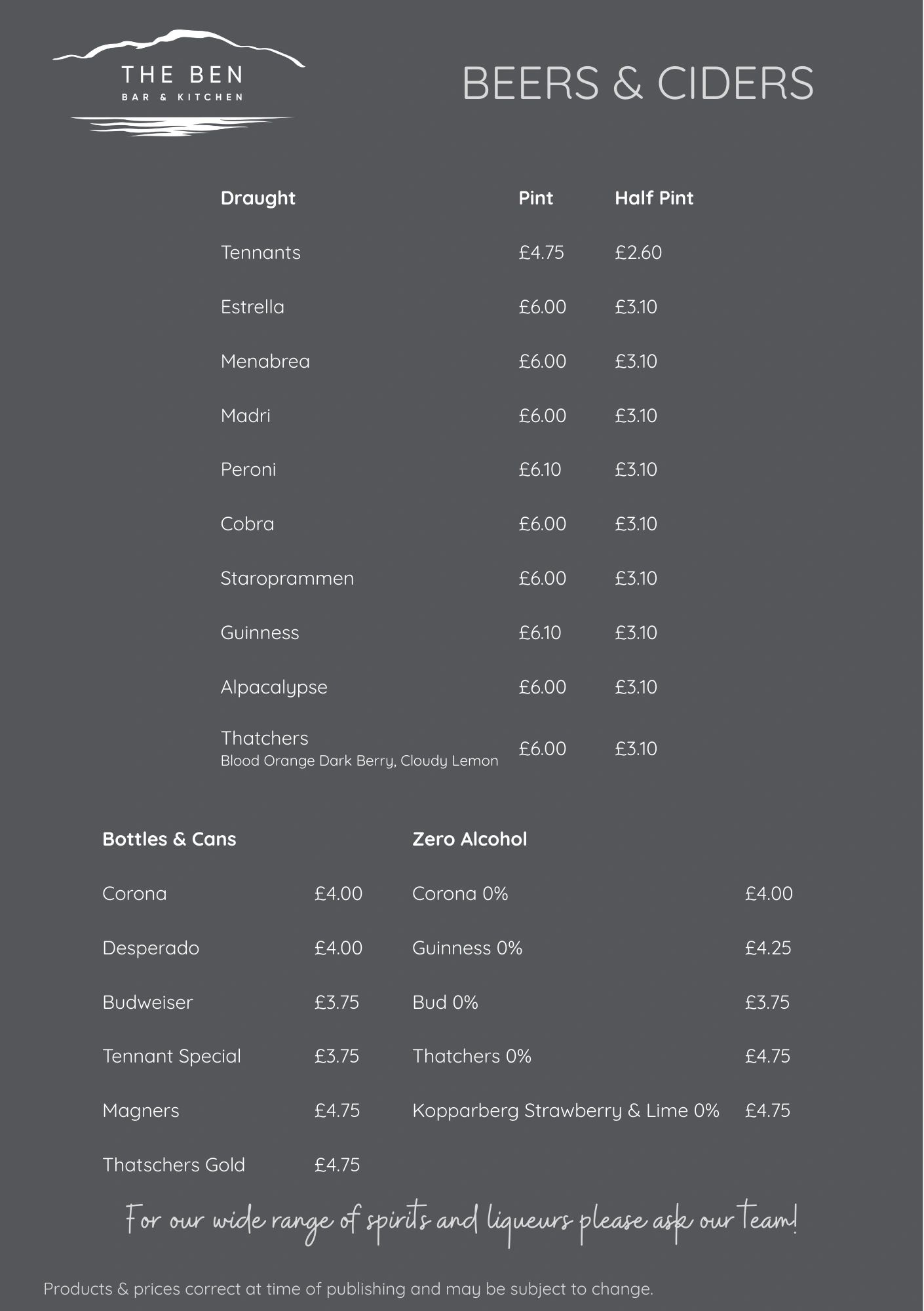 Drinks menu