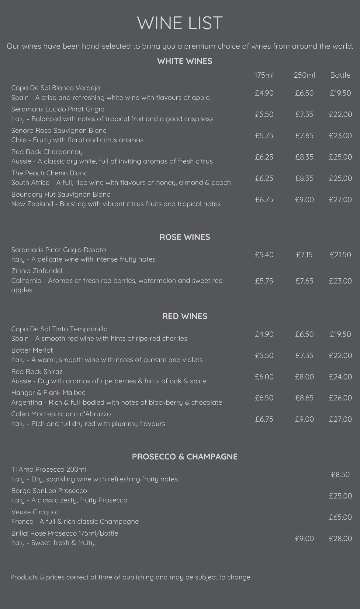 • Drinks Menu